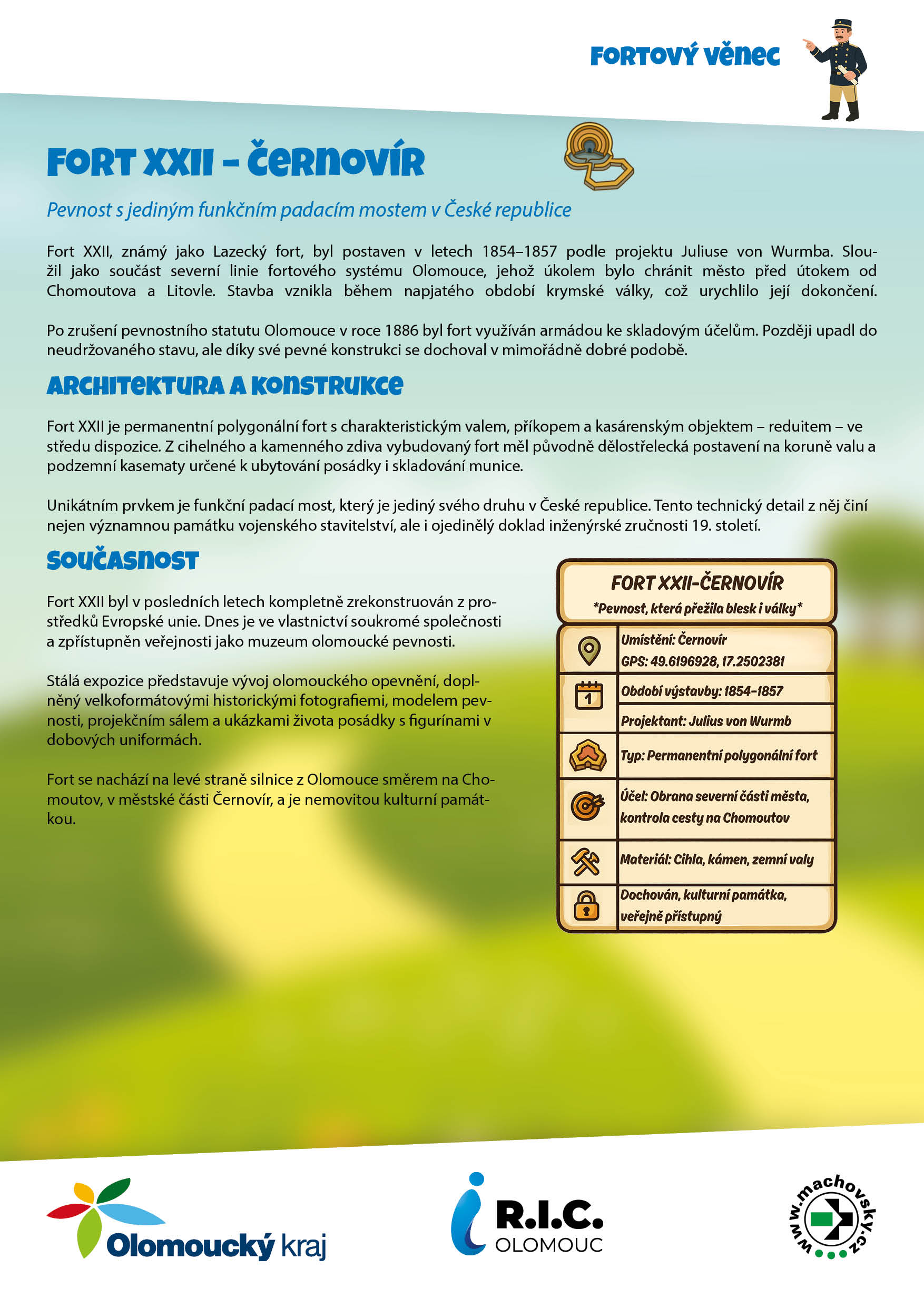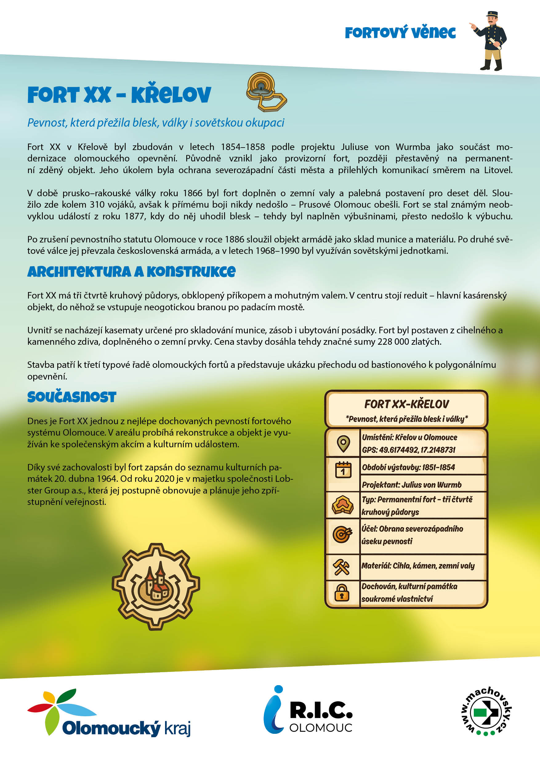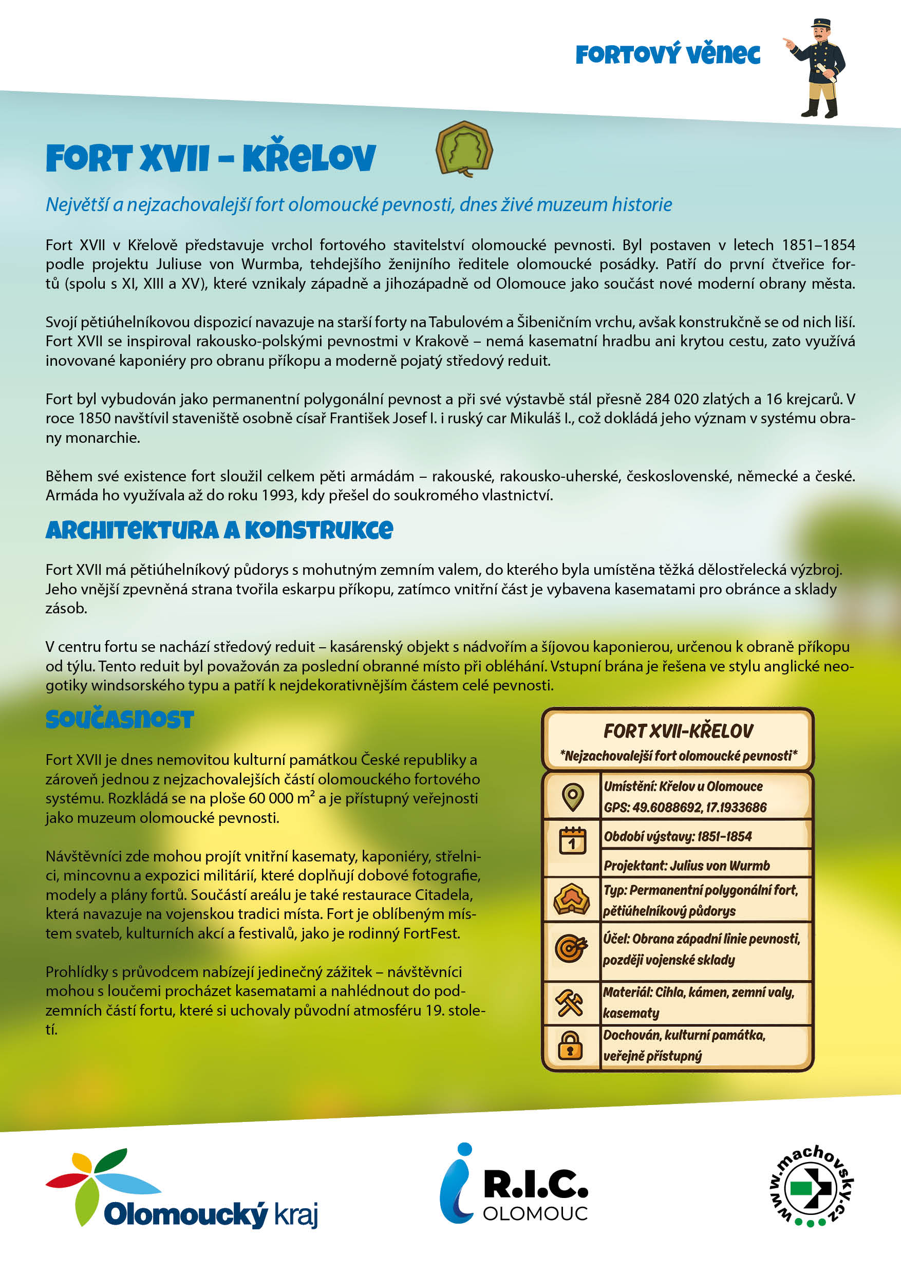 Dnes se po těchto stopách můžete vydat i vy. Navštivte Fort Radíkov s výhledem do krajiny, Fort Křelov proměněný v muzeum vojenské historie nebo Fort Černovír, který stále uchovává původní atmosféru vojenské pevnosti. Stezka připomíná dobu, kdy Olomouc střežila hranici monarchie – a zároveň ukazuje, jak se z někdejší vojenské pevnosti stala součást kulturní krajiny.